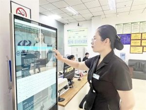 凤岭名园物业服务中心内,“数字人管家”可提供政策咨询和生活服务指引。记者廖欣 摄